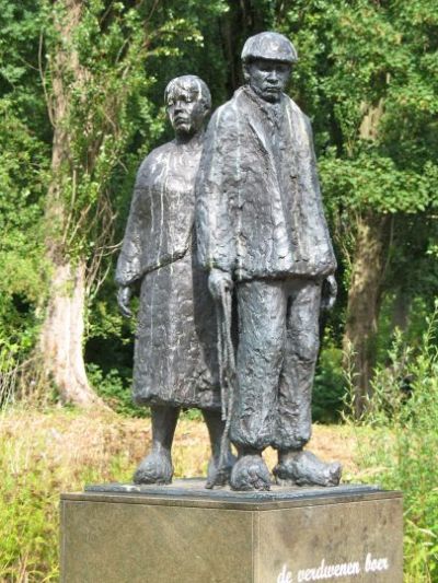 Onlangs was ik op de fiets in Amsterdam en kwam daar dit standbeeld ter ere van de verdwenen boer tegen: