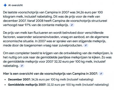 2007 was melk ook schaars en heel duur, 2009 was het huilen met de pet. Uitteders.