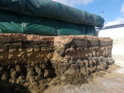 Afgelopen 1,5 jaar heeft hij ervaring opgedaan met dit systeem en is er erg positief over. De nattere laatste snede ligt bovenop en in het najaar komt ook de mais er nog bovenop. Doordat de andere sneden droger zijn vangen die alle perssappen op en gaat er weinig voederwaarde verloren. De totale tijd die hij kwijt is aan de kuil open en dicht maken is minder dan voorheen, toen hij met meerdere kleine kuilen werkte. Het oprollen en afrollen van het dekkleed over de kuil gaat snel, maar moet wel zorgvuldig gebeuren, anders kost het extra tijd en handarbeid om het kleed netjes over de kuil te krijgen. Door de grootte van de silo is er veel capaciteit met inkuilen. Het voer kan goed verdicht worden omdat het in dunne lagen aangebracht wordt. Ook door de mais boven op het gras te kuilen resulteert dit in een kuil met een hoge dichtheid. Er is ruim 300 kg ds/m3 gemeten.