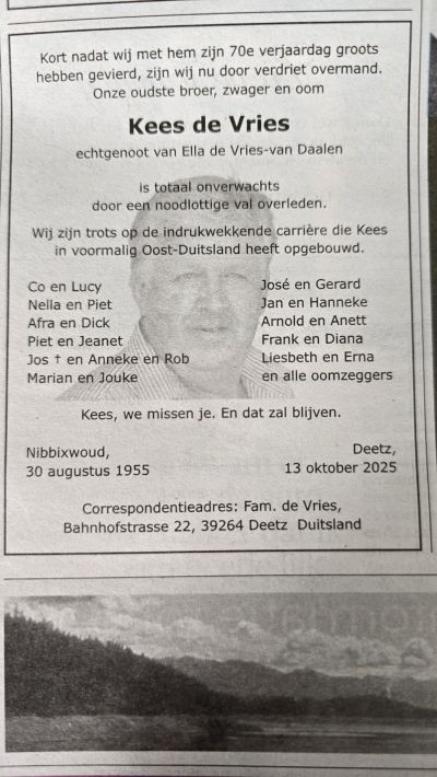 Voormalig CDU-politicus Kees de Vries (70) overleden