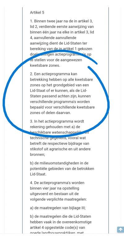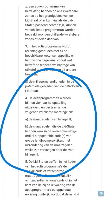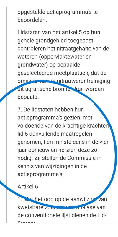 Artikel 5 Nitraatrichtlijn verplicht een lidstaat ELKE vier jaar met een nieuw actie programma te komen.