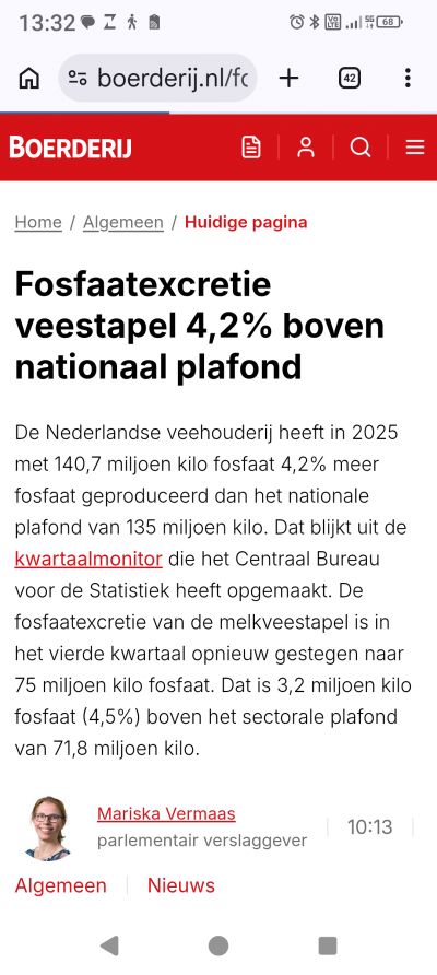In juni komt fosfaat monitor eerste kwartaal 26. Dan komt ook de definitieve rapportage 2025. Medio herfst beslist de minister dan zijn plan van aanpak......korten met terugwerkende kracht 2026 bijv